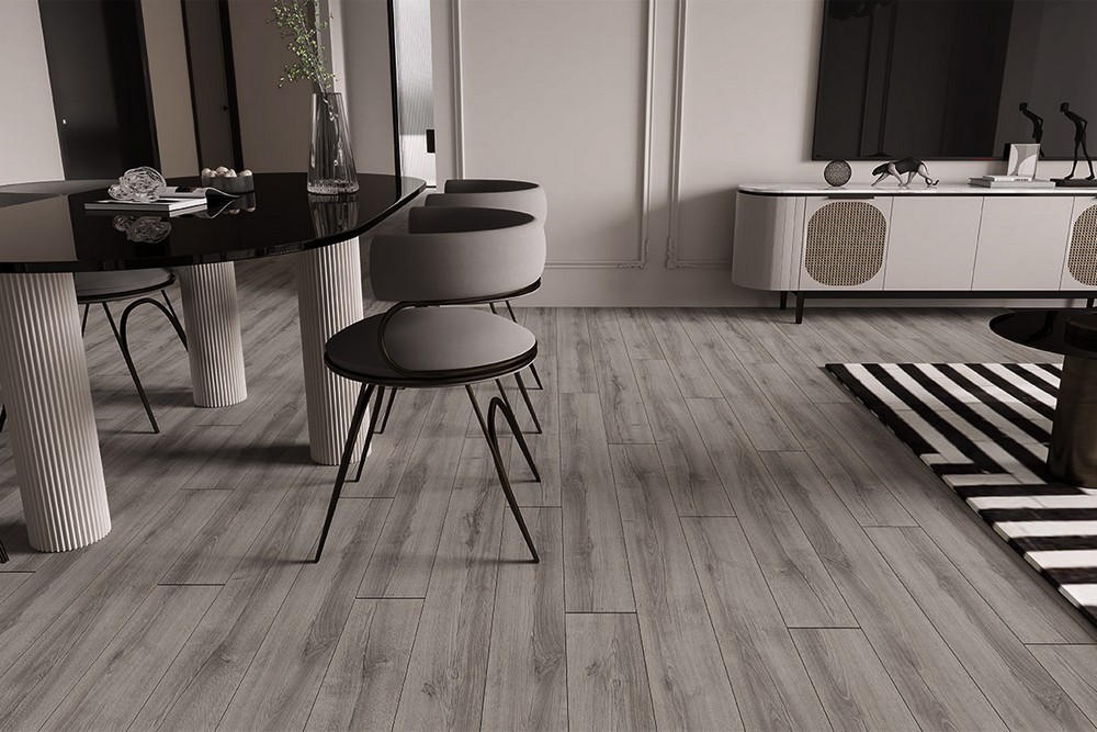Дизайн коллекции «Anatolia 8/33» выполнен в благородной цветовой гамме дуба с элегантным оттенком серого («Дуб Грей»). Поверхность материала имитирует натуральное дерево, создавая уютную атмосферу в интерьере.